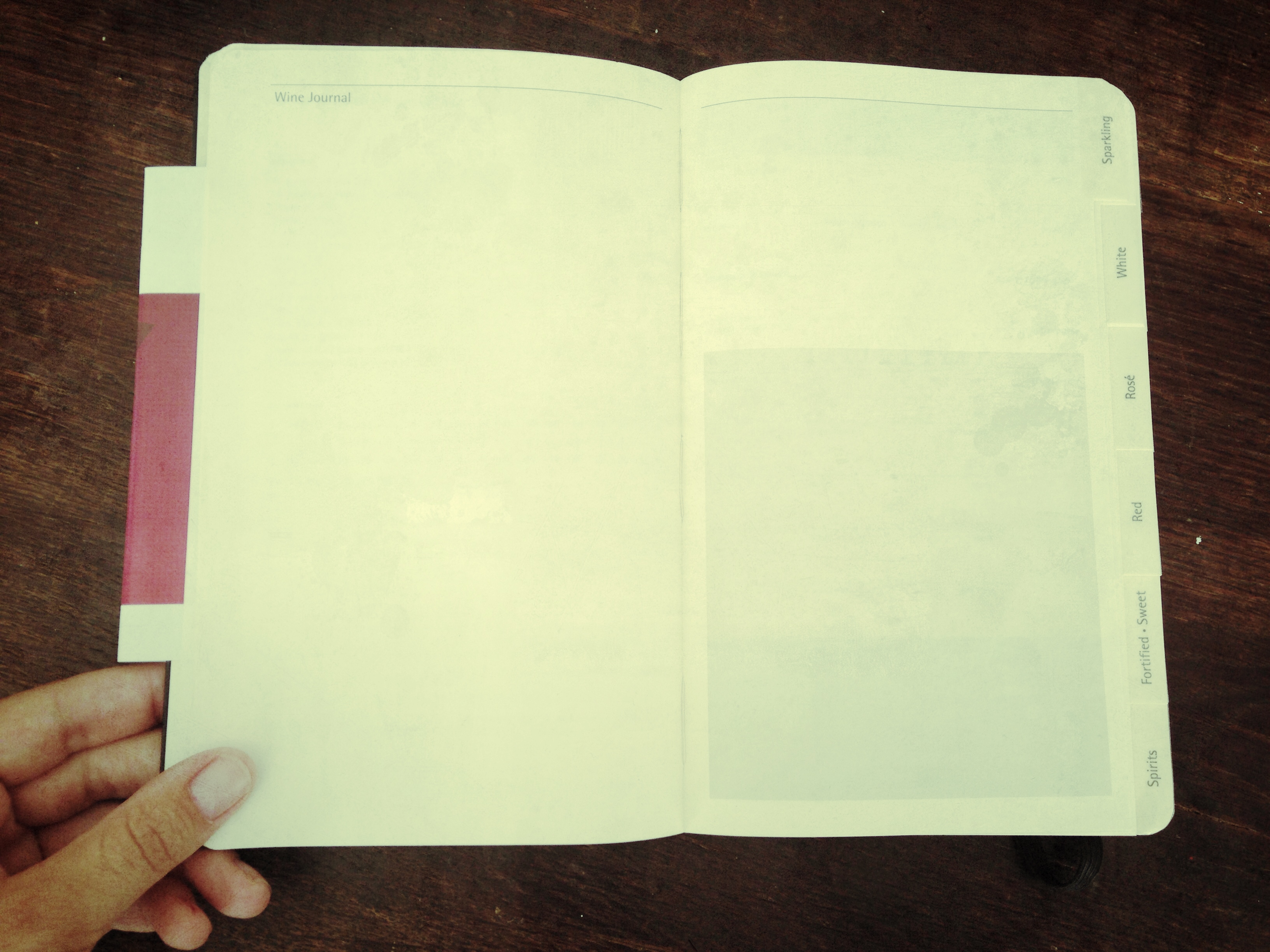 Das Journal hat eine einfache und praktische Aufteilung. Es ist nach Weinsorten sortiert. Von Sparkling bis Spirits. Und dann kann man jeden Wein auf einer Seite beschreiben. Wo und mit wem habe ich ihn getrunken, Alkoholgehalt, Farbe, in welchem Glas sollte er serviert werden, zu welchem Essen passt er und so weiter. Im Anhang sind dann noch reichlich Seiten für freie Notizen.