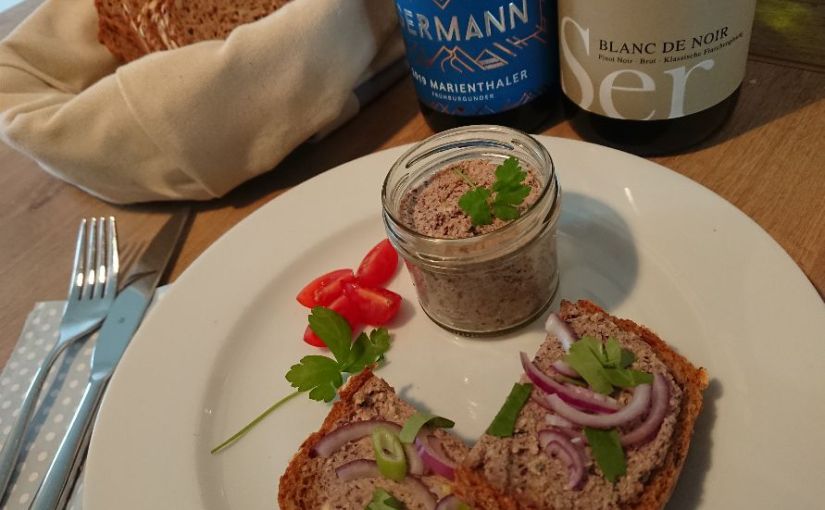 Dieses Mal begeben wir uns kulinarisch in ein Weingebiet, das bei uns sozusagen direkt vor der Haustüre liegt: das Ahrtal. Auch in dieser Region gibt es viele deftige Köstlichkeiten, darunter die Eifeler Leberwurst. Diese präsentieren wir Euch passend zur Fastenzeit in einer fettarmen, veganen Version. Dazu probieren wir sowohl einen Blanc de Noirs Sekt, als auch einen trockenen Frühburgunder vom Weingut Sermann aus Altenahr.