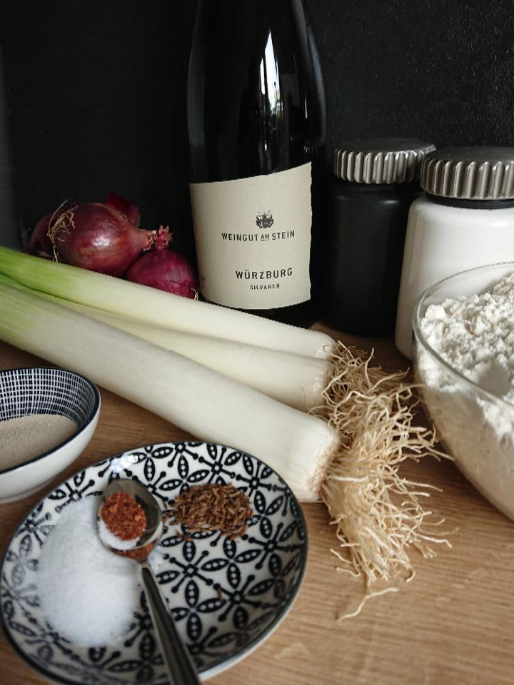 Der Lauchblootz ist die gelungene fränkische Mischung aus Zwiebelkuchen und Flammkuchen und wird gern bei geselligen Weintreffen gereicht. Gesellig können wir aktuell zwar nicht sein, dennoch wollen wir unseren vegetarisch umgewandelten Klassiker mit einem guten Glas Wein genießen. Vinotarisch eben!